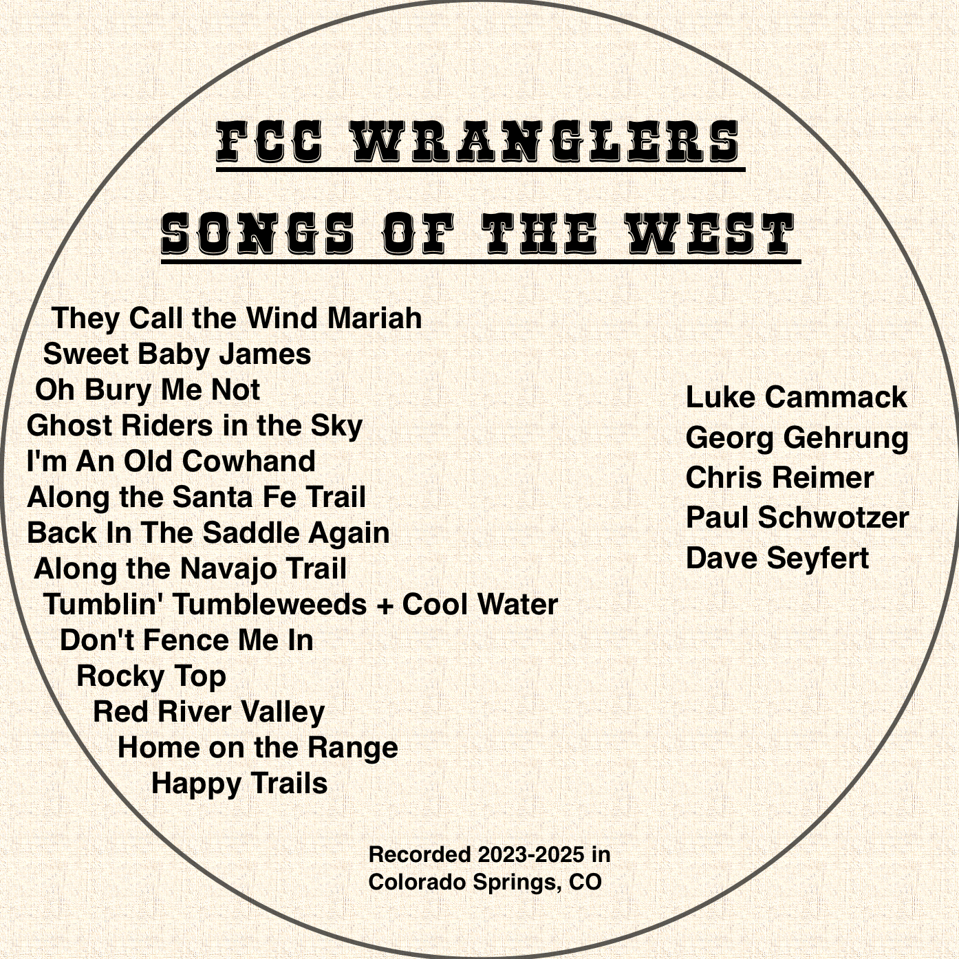 This is a collection of western favorites which we have shared on several occasions over the years with audiences at First Congregational Church, United Church of Christ, Colorado Springs.
