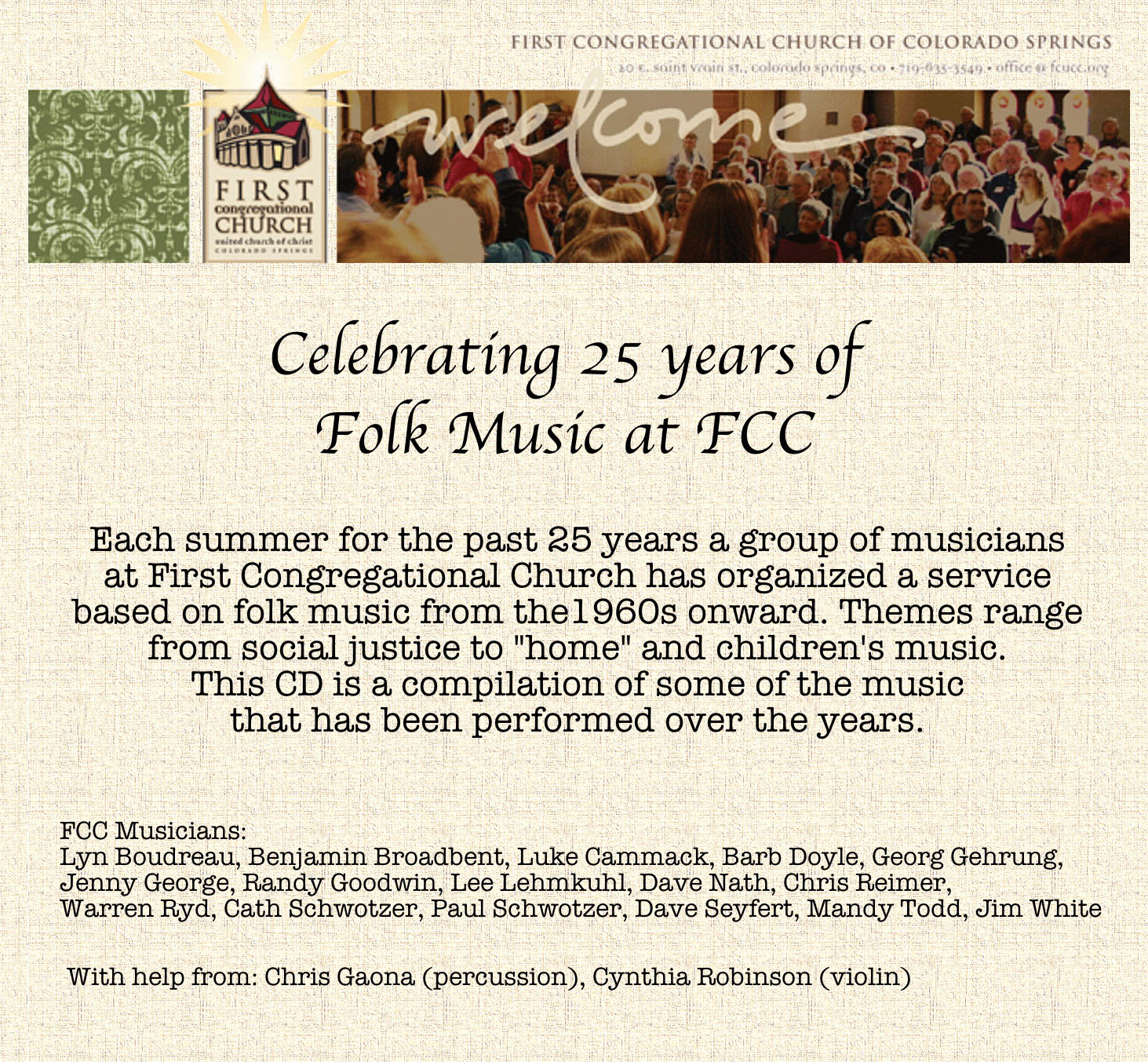 In 2015 a group of folk musicians at First Congregational Church in Colorado Springs, CO